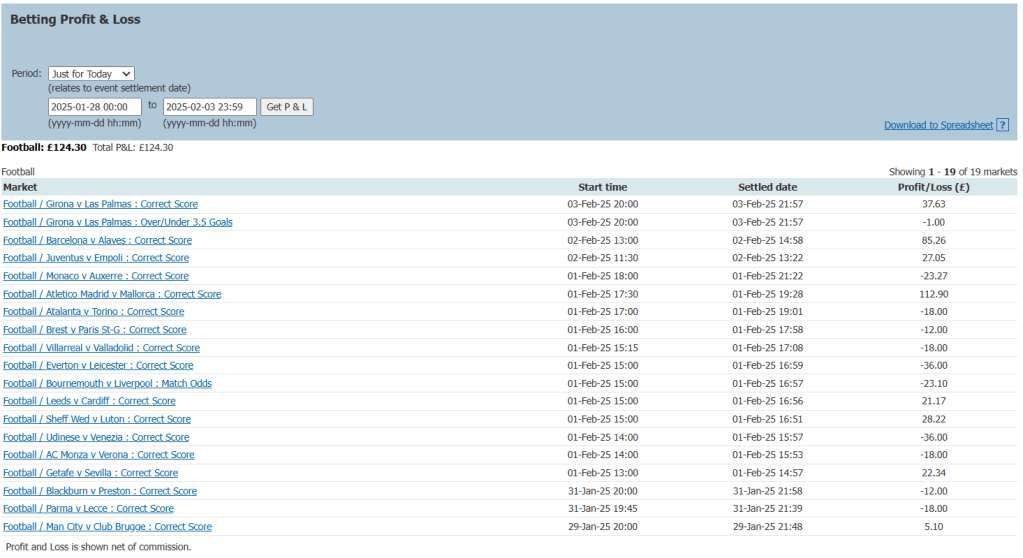 The good thing is that at least I’ve managed to stop the rot for this week at least. I’m made up with the profit for this week, but I envisage week 10 will be a hard week as it’s FA Cup weekend so there won’t be as many games to trade. The Premier League is basically a wipe-out, and there’s a limited schedule for the Championship. Hey-ho! Although I’m seeing this as a little bit of a blessing to come away from trading a little after the recent losses, a chance to relieve the stress a little. I will still be trading this weekend, just not as much with the reduced schedule. If you are trading yourself I wish you the best of luck. And may the Lord be with you. Always!